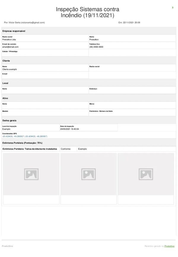 Check list de inspeção sistema de combate a incêndio com QR Code, fotos com marcação de data e localização, questões de conformidade com pontuação e +11 recursos. Confiabilidade e agilidade na geração dos seus relatórios técnicos e laudos!