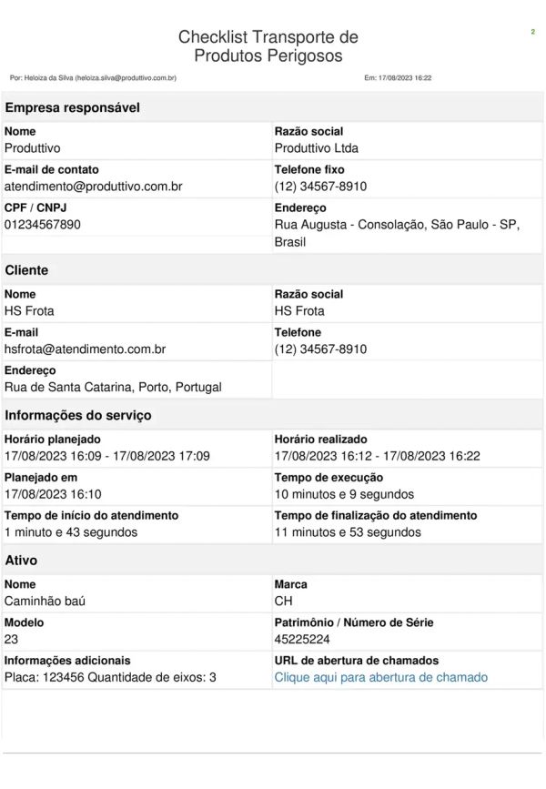 Check list Transporte de Produtos Perigosos Modelo Digital