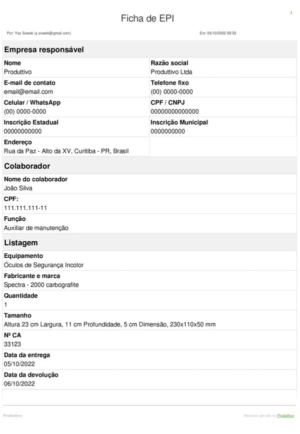 Ficha de EPI Modelo Digital