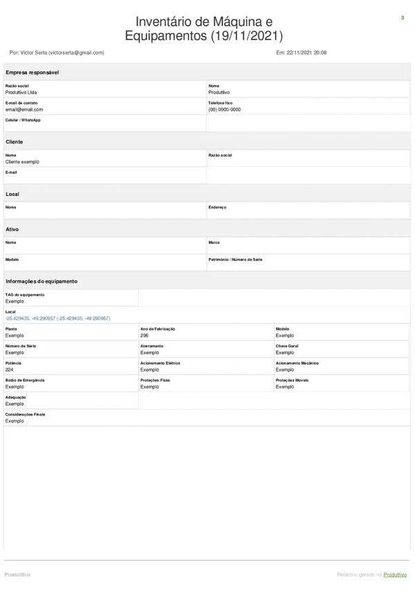 Inventário de máquinas e equipamentos com recursos que garantem maior agilidade na coleta das informações, como QR Code, preenchimento automático de informações e outros. Integrado com outras funcionalidades, como histórico de equipamentos.