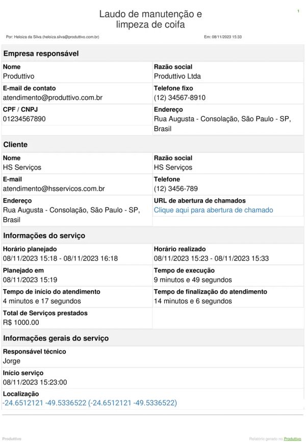 Laudo de manutenção e limpeza de coifa Modelo Digital