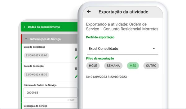 As ordens de serviço digitais podem ser enviadas para o cliente direto do celular do técnico, assim que o preenchimento é finalizado, em PDF ou Excel.
