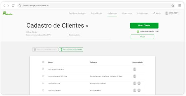Facilite o preenchimento das OS digitais cadastrando as informações de locais, clientes e equipamentos, que já saem preenchidas automaticamente nos relatórios finais.
