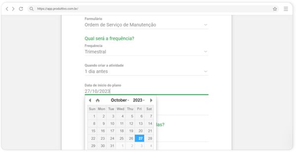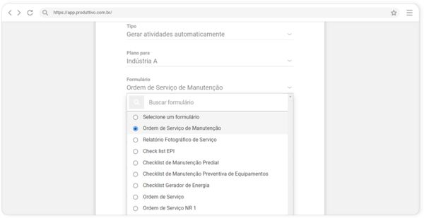 Agende automaticamente atividades recorrentes de acordo com a periodicidade de realização, incluindo o modelo de ordem de serviço que deve ser preenchido.