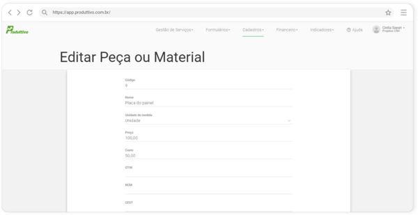 No sistema de ordem de serviço do Produtivo o cálculo de peças, materiais e serviços é feito de forma automática com base nos dados cadastrados. Faça orçamentos em instantes.