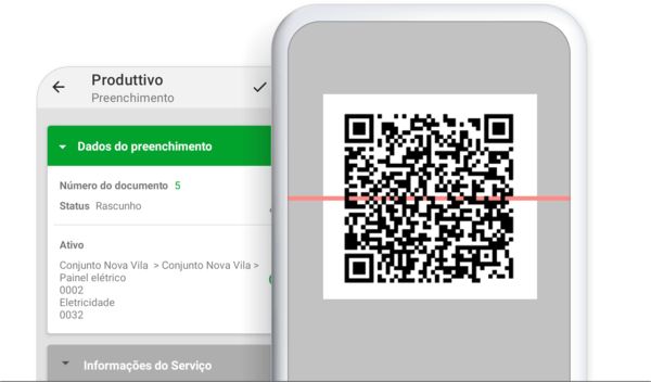 As informações de equipamentos, clientes ou locais podem ser preenchidas automaticamente ao scanear o QR CODE. Também é possível consultar o histórico de outros preenchimentos.