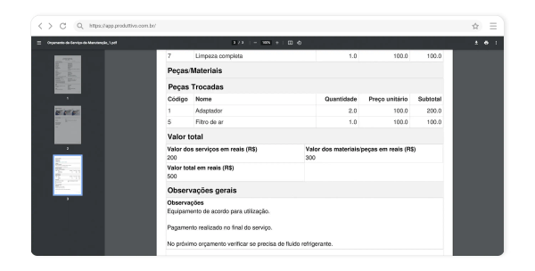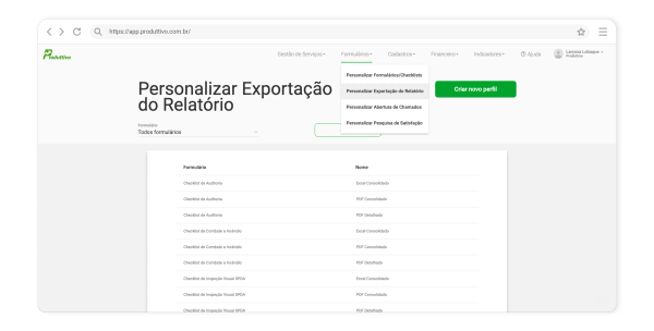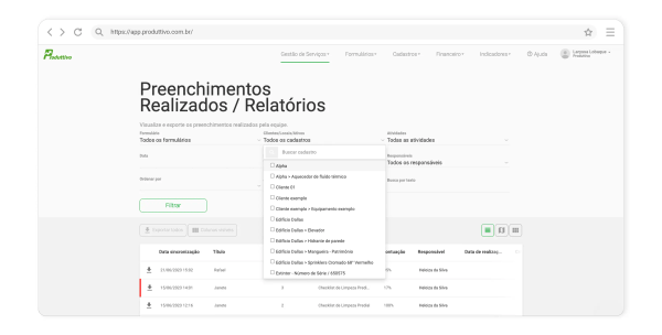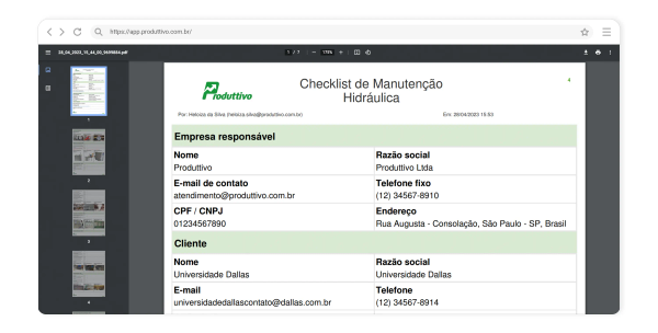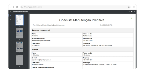 No software de manutenção do Produttivo é possível gerar vários tipos de relatórios, checklists e laudos.